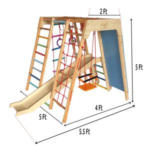3. Cognitive Development: Exploring the different components of our modular jungle gym like moneky bar, rope ladder, swing, Gymnastic ring, slider, mountain climber, step ladder, wooden ladder, rope hrudle climber stimulates cognitive development in babies. They'll learn problem-solving skills and improve their spatial awareness while having an absolute blast!