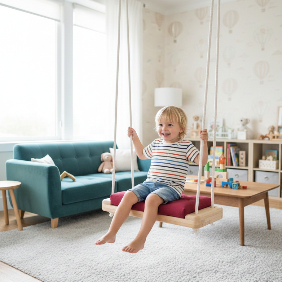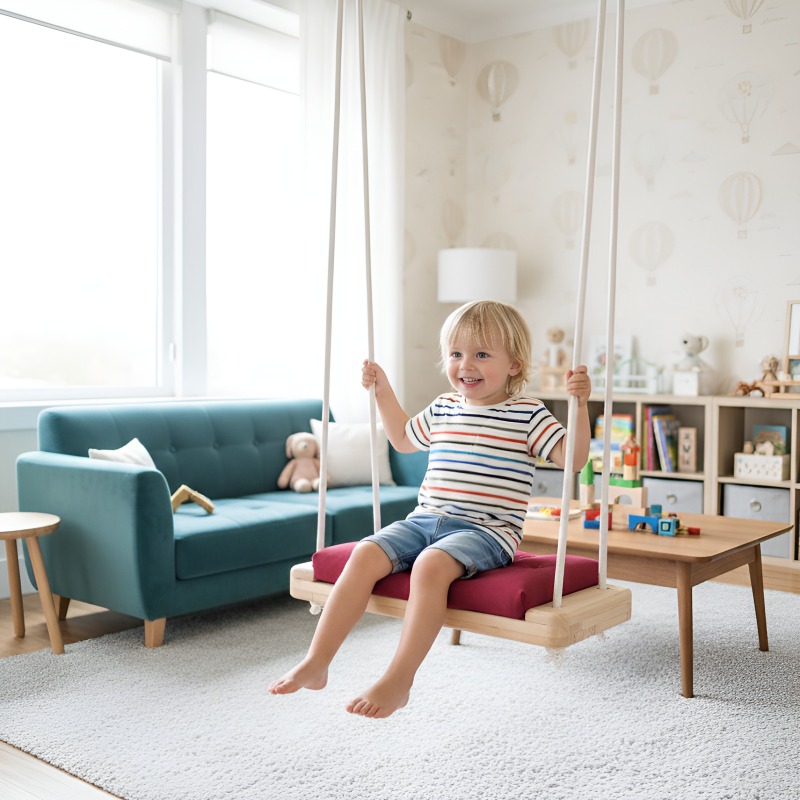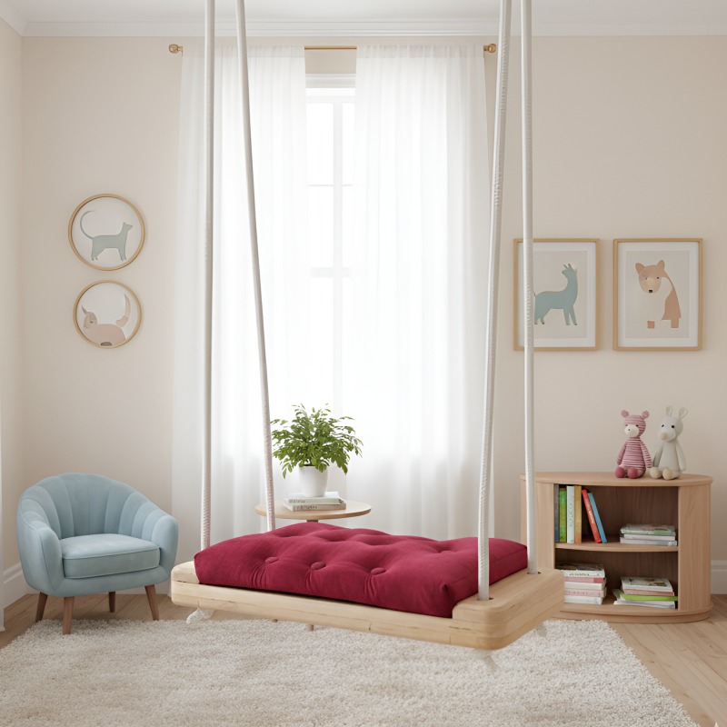 Bring fun and comfort to your child’s playtime with this beautifully crafted Cloud Rider. Designed for both indoor and outdoor use, it features strong support ropes and a sturdy wooden base that ensures safety while your child enjoys gentle swinging. The plush, tufted cushion offers superior comfort, making it perfect for reading, relaxing, or playful moments. Its minimalist design blends effortlessly with any home décor, playroom, or garden setup. Easy to install and built with durability in mind, this swing creates a cozy spot your kids will love while encouraging active movement and balance.