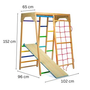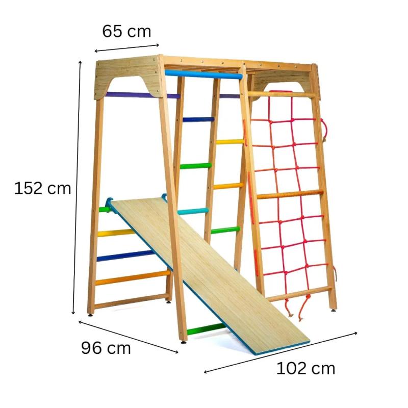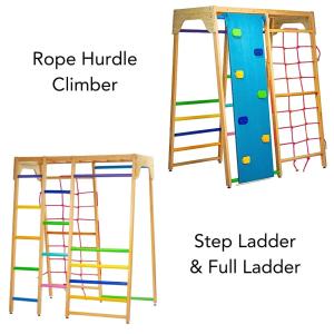 Motor Skills Development: Climbing, crawling, and exploring the different components of a wooden jungle gym can help develop a baby's gross motor skills. This includes activities like swinging, hanging, and climbing, which promote coordination and balance.