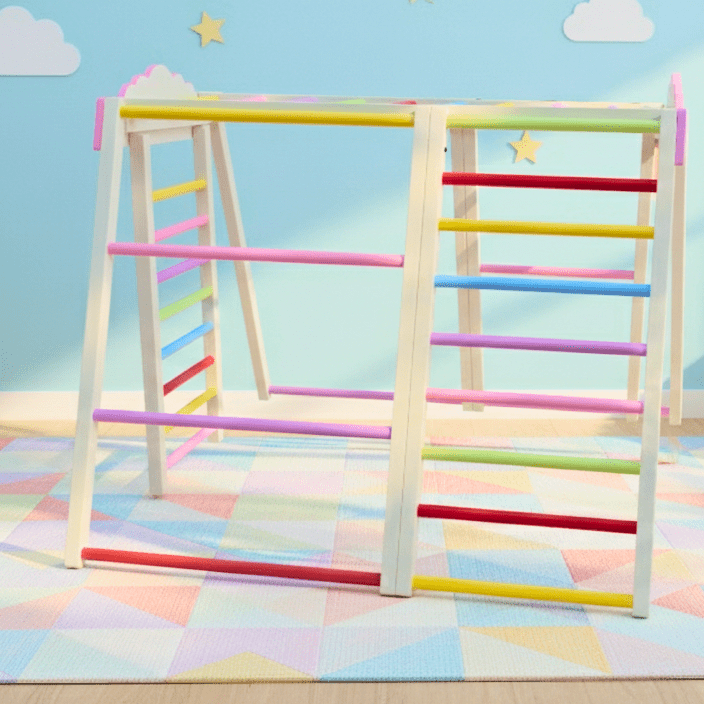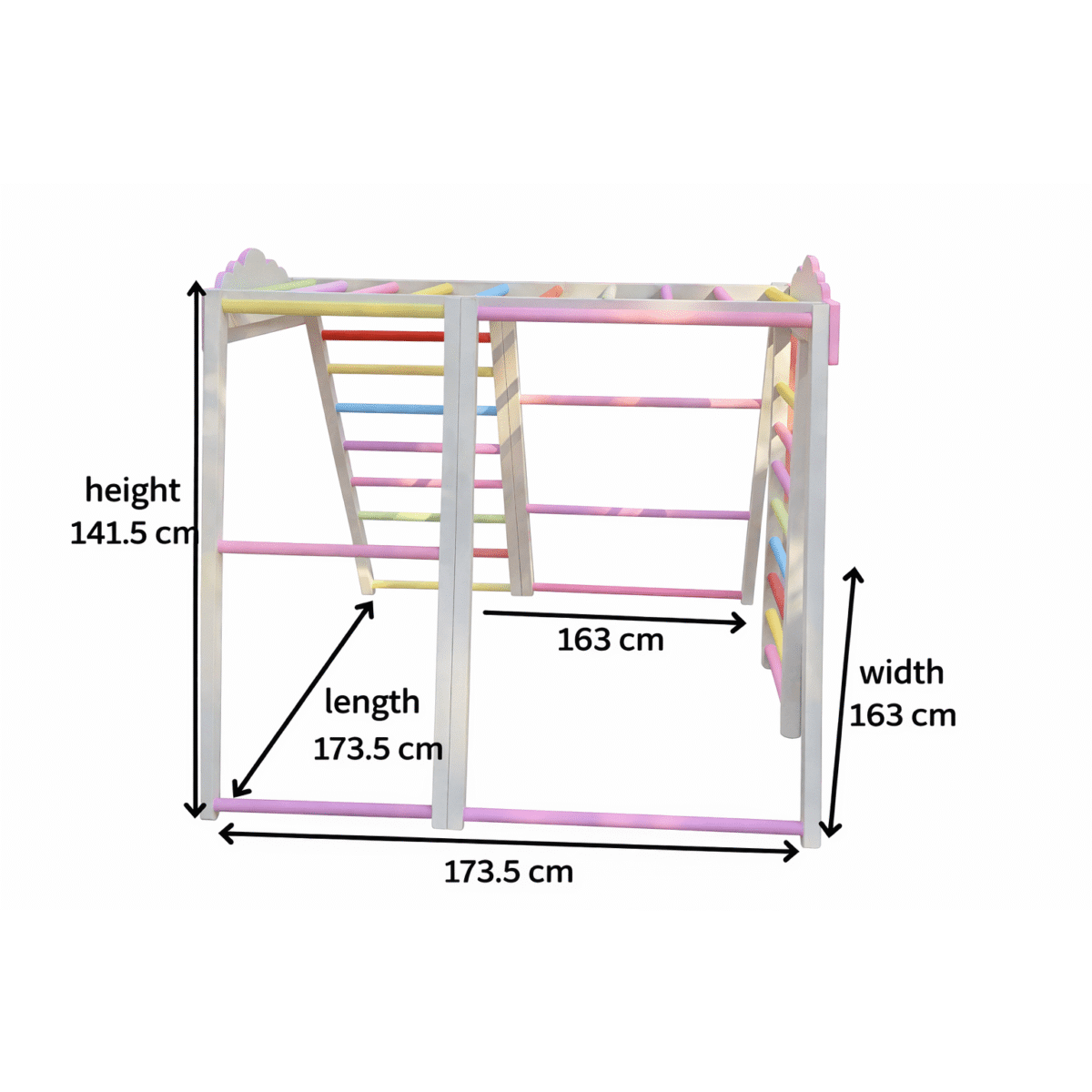 Bring fun, fitness, and confidence into your child’s daily routine with the Forest Fun Jungle Gym, a sturdy wooden climbing frame specially designed to encourage active play while developing strength, balance, coordination, and overall motor skills in children aged 2 to 10 years. Crafted from high-quality durable wood with a smooth, child-safe finish, this multi-activity structure includes ladders and climbing bars that promote full-body exercise and adventurous play. Its bright pastel colors create a cheerful and engaging environment, making it perfect for indoor playrooms or covered outdoor spaces. Built with a strong and stable frame, it safely supports energetic movement and multiple children at once. Designed to grow with your child, it encourages healthy physical activity while reducing screen time through interactive and imaginative play.