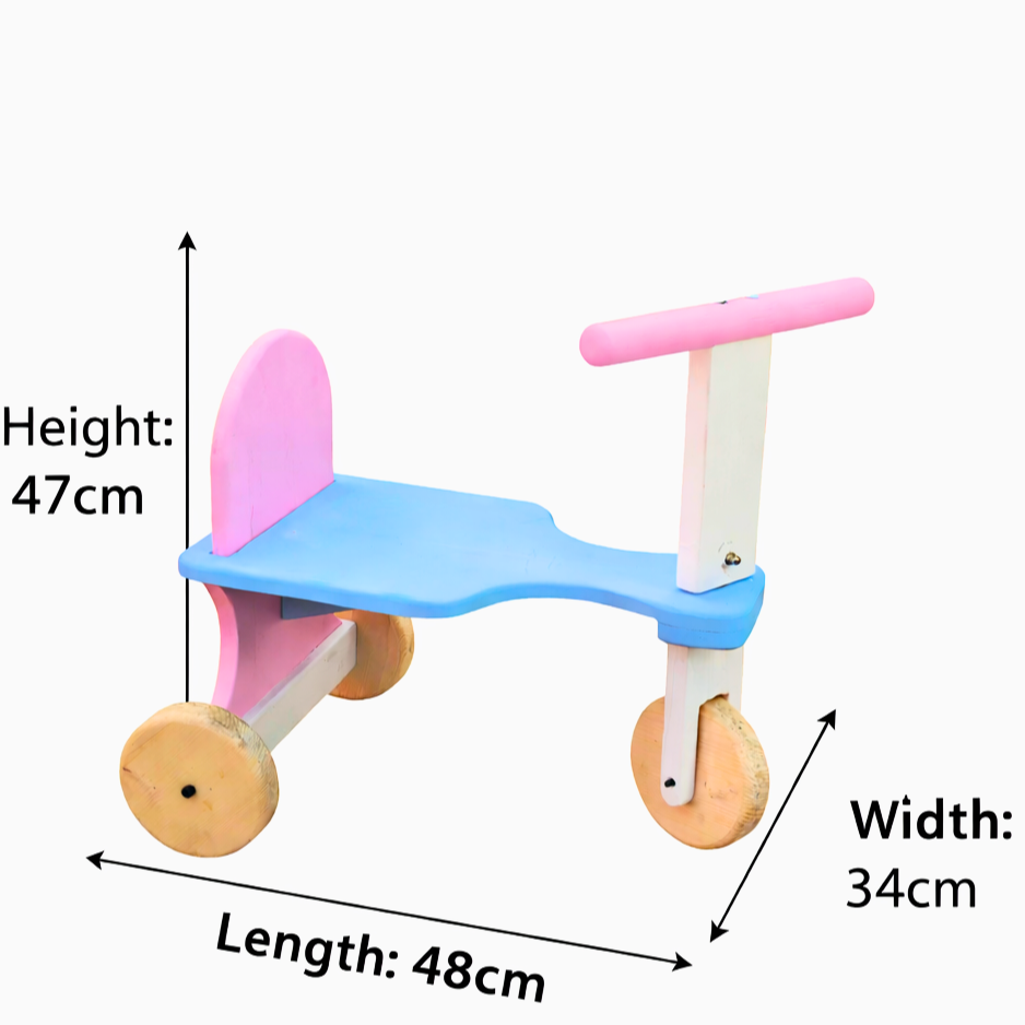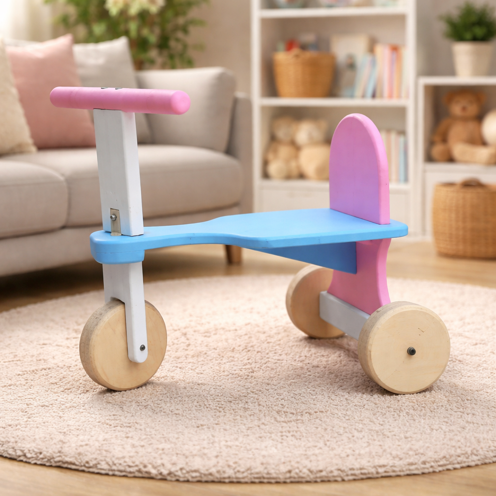 The Mini Masti Rider is a safe, sturdy, and eco-friendly ride-on designed to support early balance, coordination, and confidence in toddlers. Crafted from high-quality wood with smooth, child-safe finishes, it features a low-height, stable design and strong wheels for easy indoor and outdoor use. Its attractive pastel colors make it engaging for kids while encouraging active play, motor skill development, and independent movement from an early age.