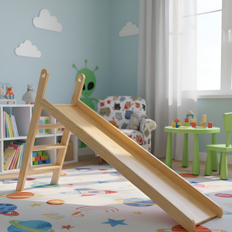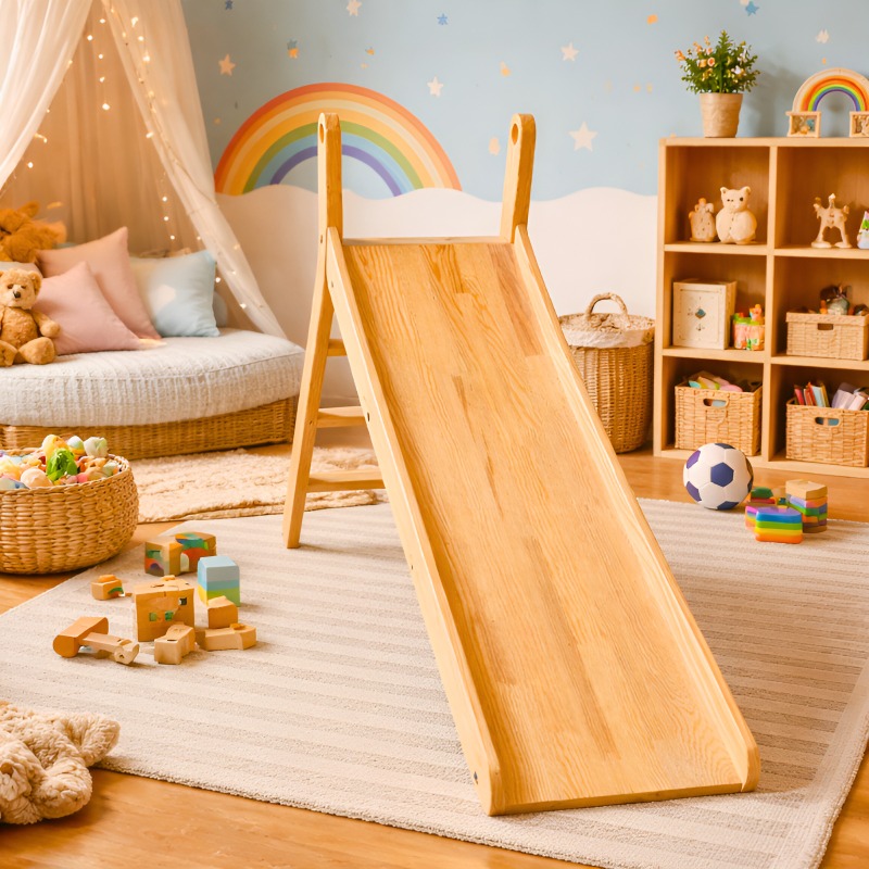 Made from smooth, natural wood with a sturdy ladder and gently sloped sliding surface, My First Slide blends seamlessly into nurseries, playrooms, and early learning spaces. Its minimalist design complements modern interiors while offering durable construction that stands up to energetic play.