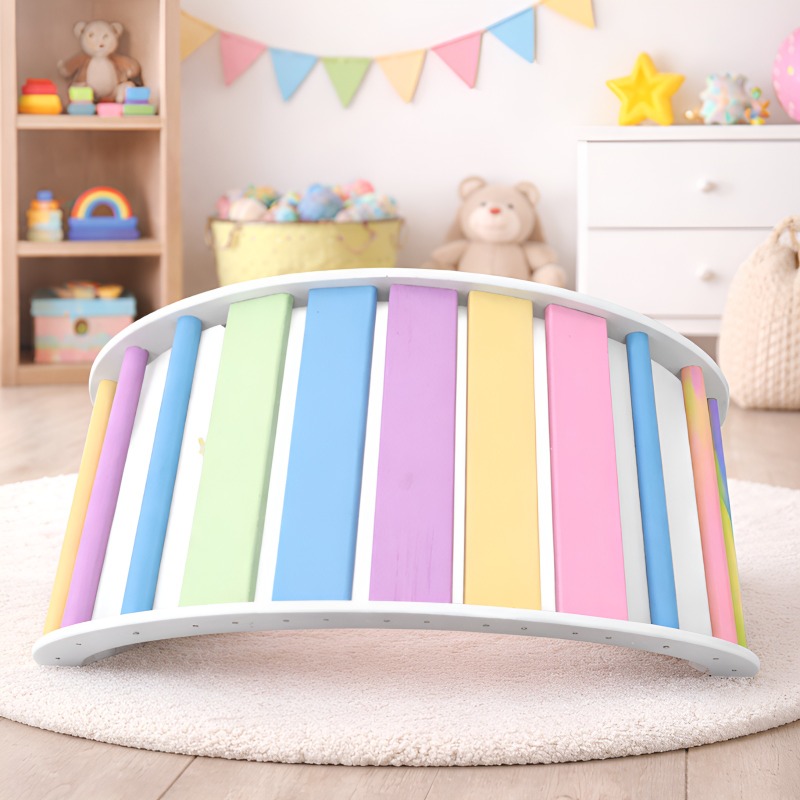 Made from sturdy pinewood and finished with a smooth recon face sheet, the Rainbow Arch Pickler is designed for safe, active play. Coated with non-toxic, water-based paint, it is completely child-friendly. Its strong structure and smooth edges help develop balance, coordination, and confidence — a colorful and versatile addition to any playroom.