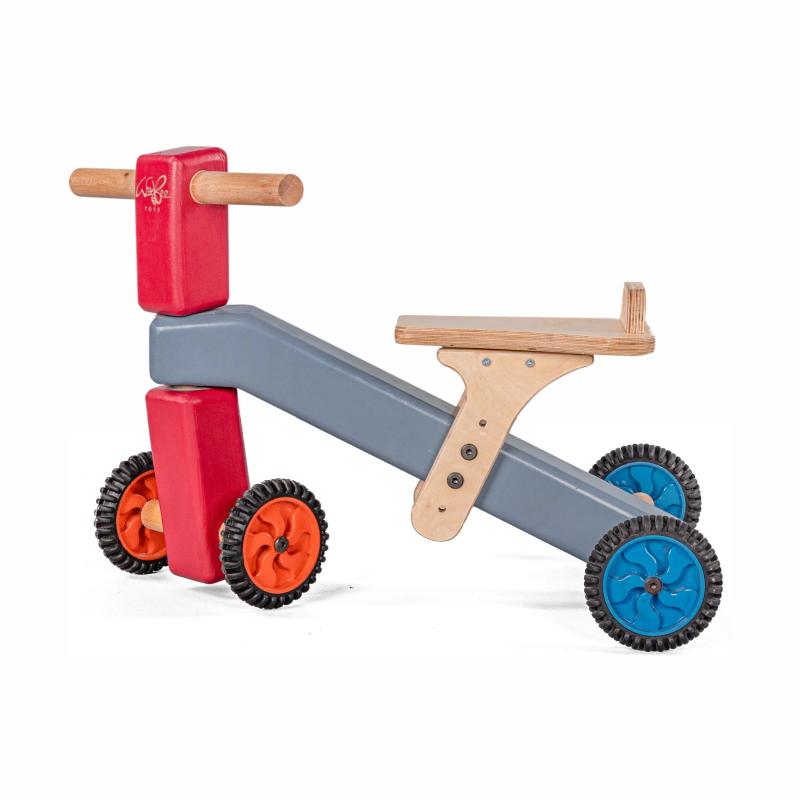A balancing bike, the one without pedals is a toddler tool that promotes the stage of gross motor development called scooting. It is at this stage, the toddler likes to use his foot to stomp the floor and move forward in a vehicle of his choice. Kids are used to this form of activity even at the absence of a wheeled prop.