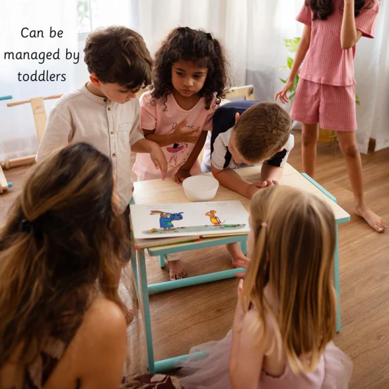 - The table's height is adjustable and can be used in three different levels as per the toddler's height.
