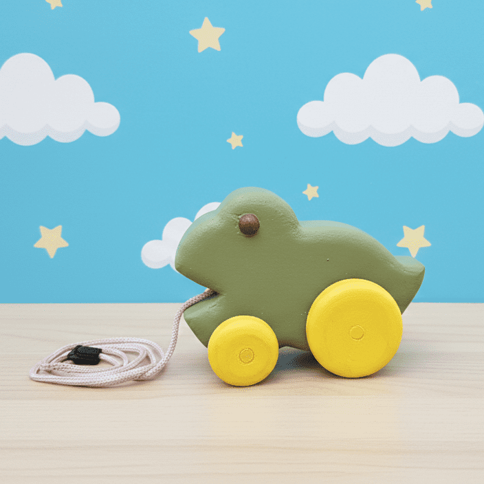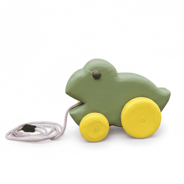 Wooden Pull Frog is a charming, child-friendly toy crafted from smooth, durable wood and painted with safe, water-based colors. Designed to inspire movement and imaginative play, this adorable frog rolls along as little ones pull the sturdy rope. Perfect for supporting coordination and motor skill development, it’s a delightful companion for early walkers and a timeless addition to any toy collection