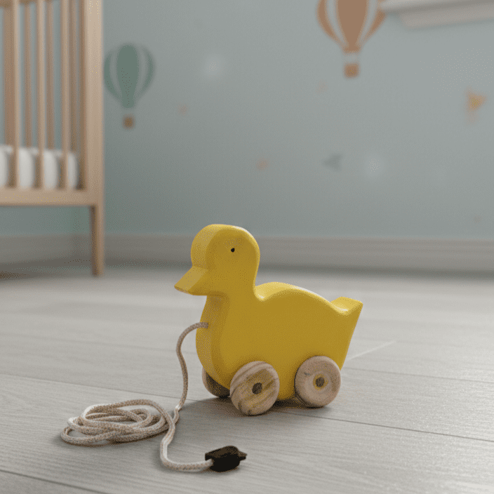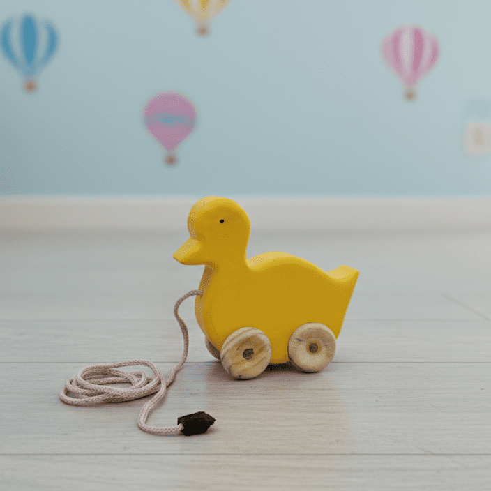 Wooden Sunny Pull Duck is a delightful push-and-pull toy crafted from high-quality wood and finished with safe, water-based paint. Designed to support early walking and active play, it can be easily pushed or pulled with its rope, encouraging coordination and motor skill development. Smooth edges and a sturdy build ensure it’s safe, durable, and perfect for little hands.